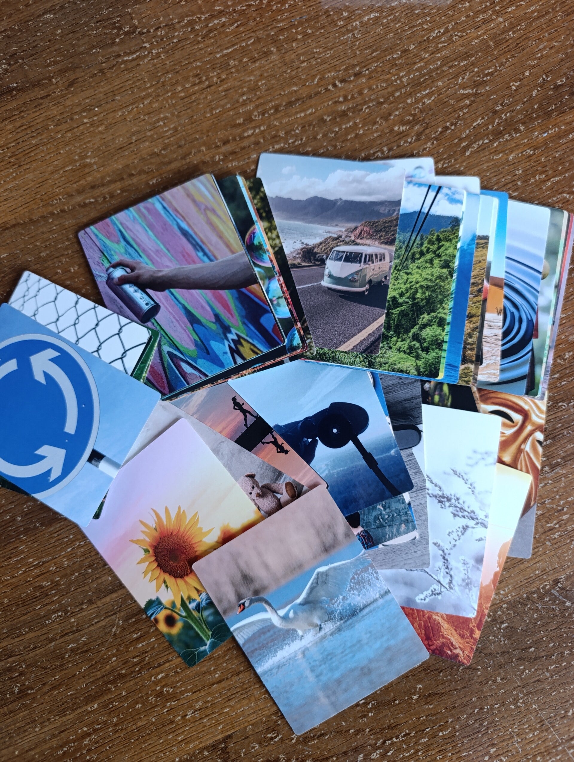 De kaarten zijn gemaakt van stevig karton, hebben afgeronde hoeken en hebben een lamineercoating waardoor de kleuren goed uitkomen.